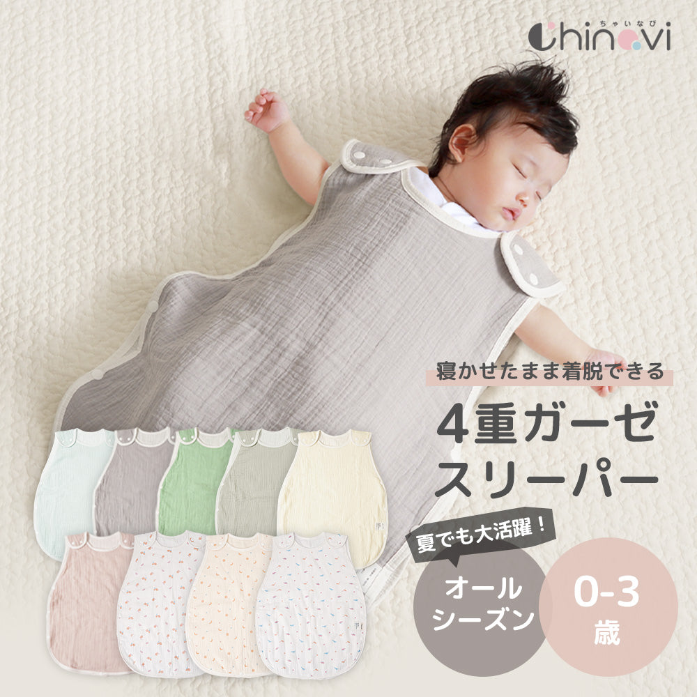 【カラーグリーン大特価!】寝たまま着せられる 4重ガーゼスリーパー 袖なし