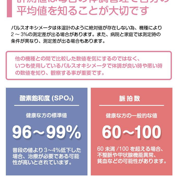 ・毎日の体調管理に ・ワンタッチ計測で酸素飽和度・脈拍数・灌流指標を計測します。 |