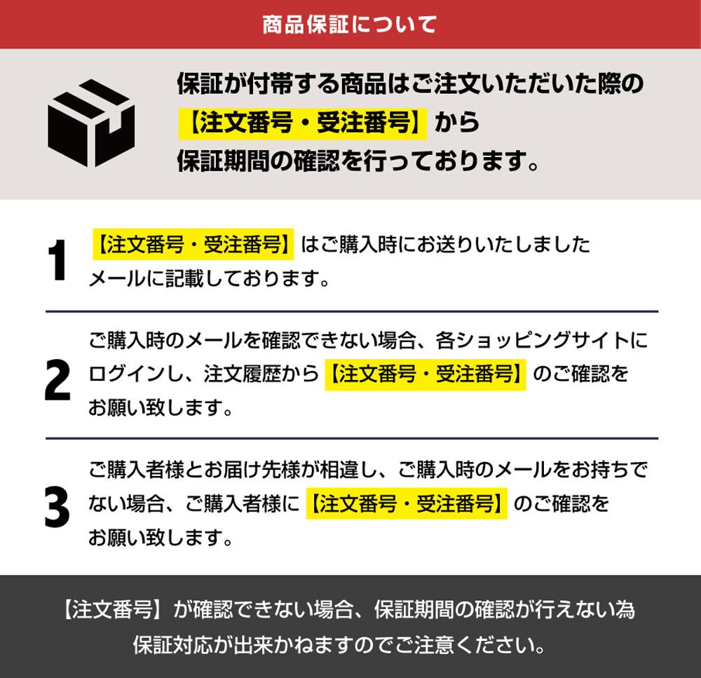 購入日より6か月保証 ※初期不良の送料ついて ・商品到着後1週間以内のものに関しては初期不良として送料弊社負担。 ・商品到着後8日以降のものに関しては送料はお客様負担とさせて頂きます。 ※本商品は訳ありアウトレット品です。箱潰れ、箱汚損などのため特別価格となっております。また動作確認検品のため開封済みの場合があります。 |