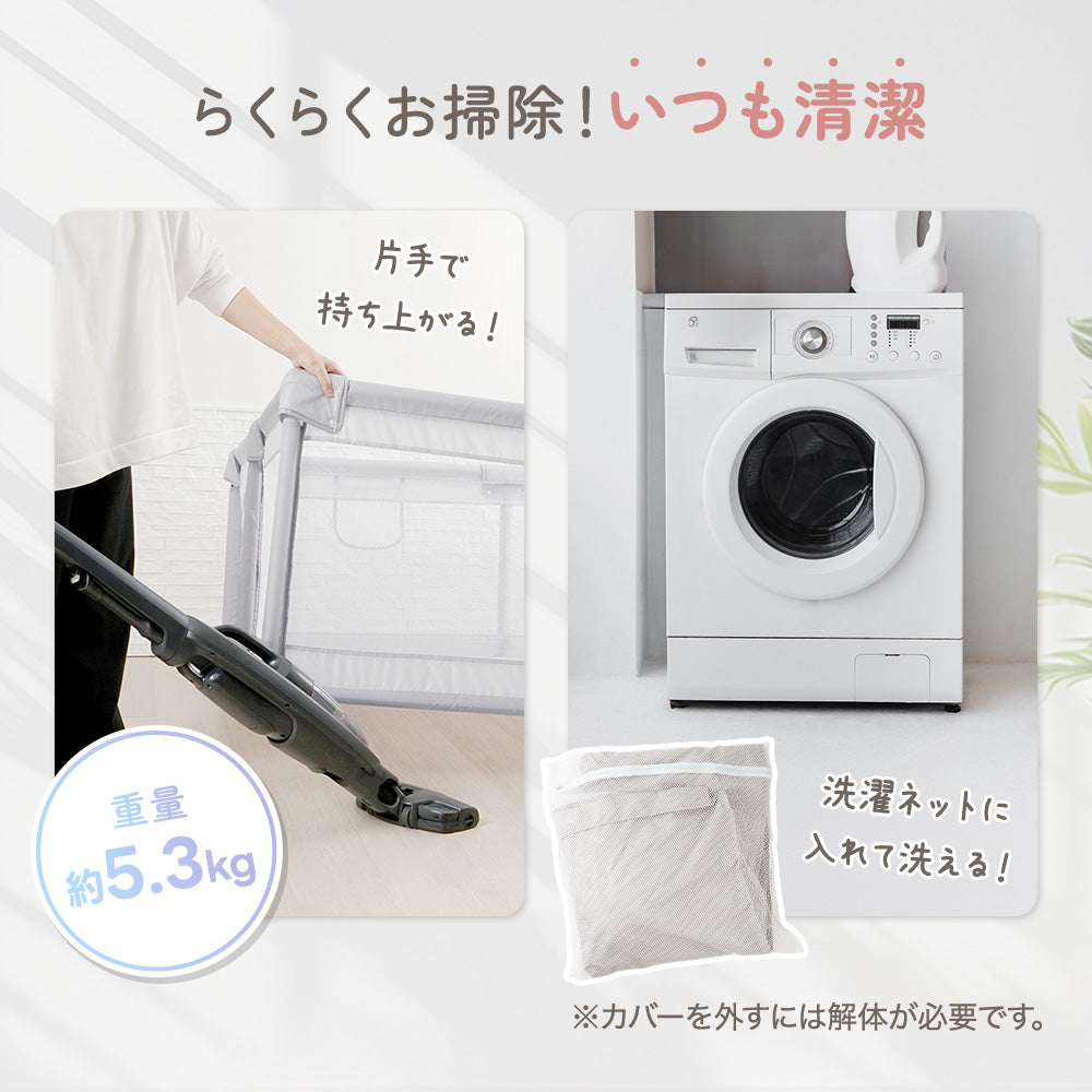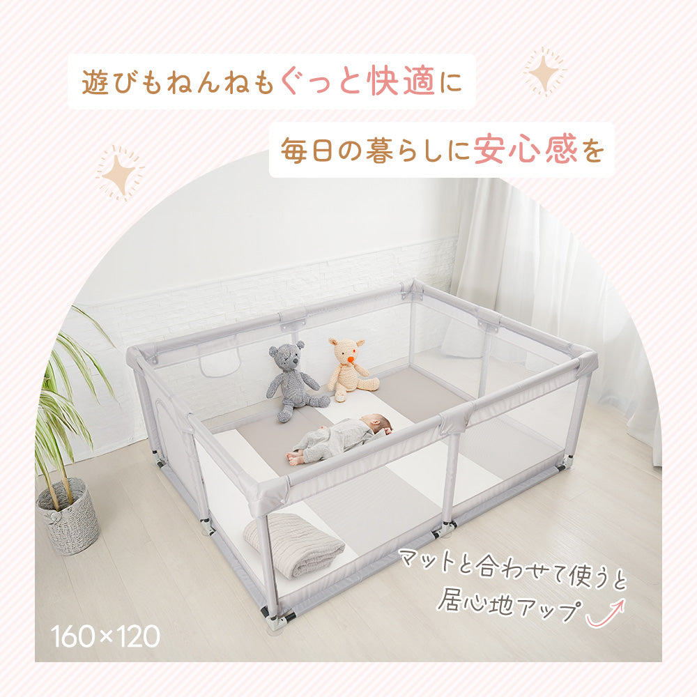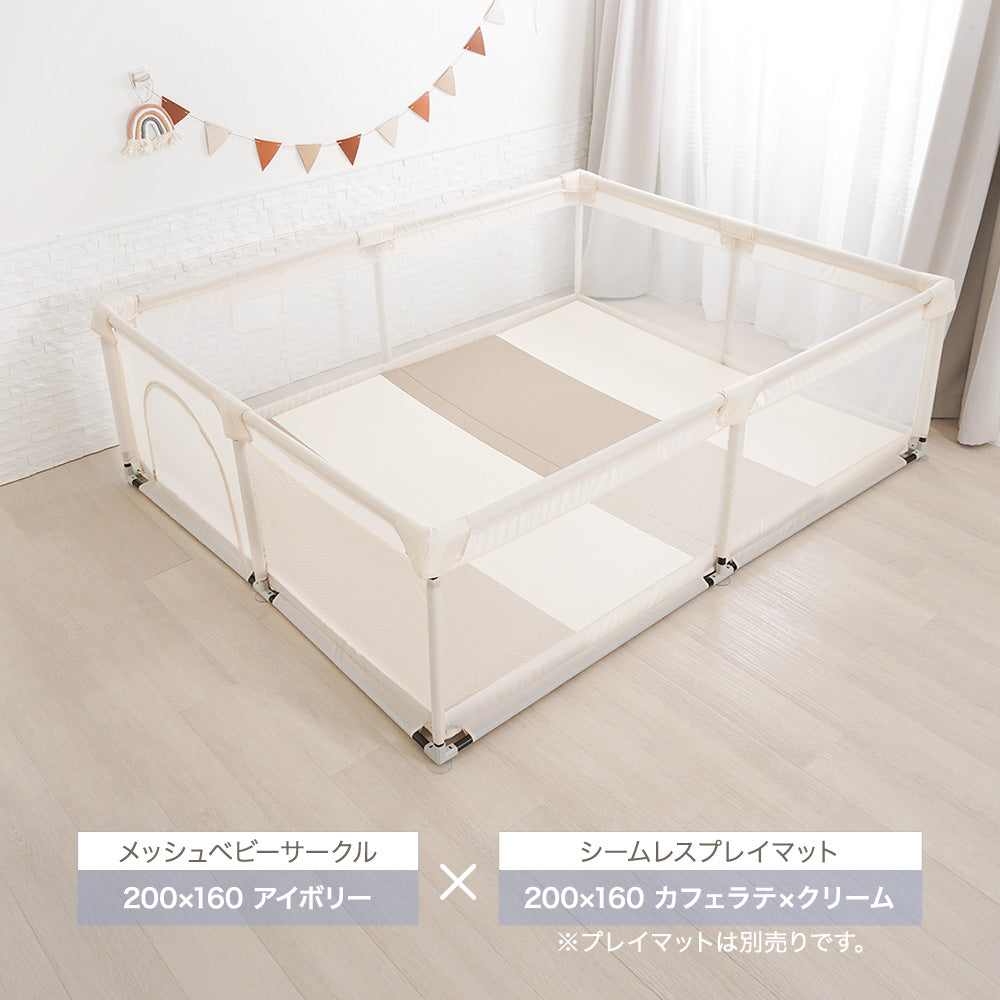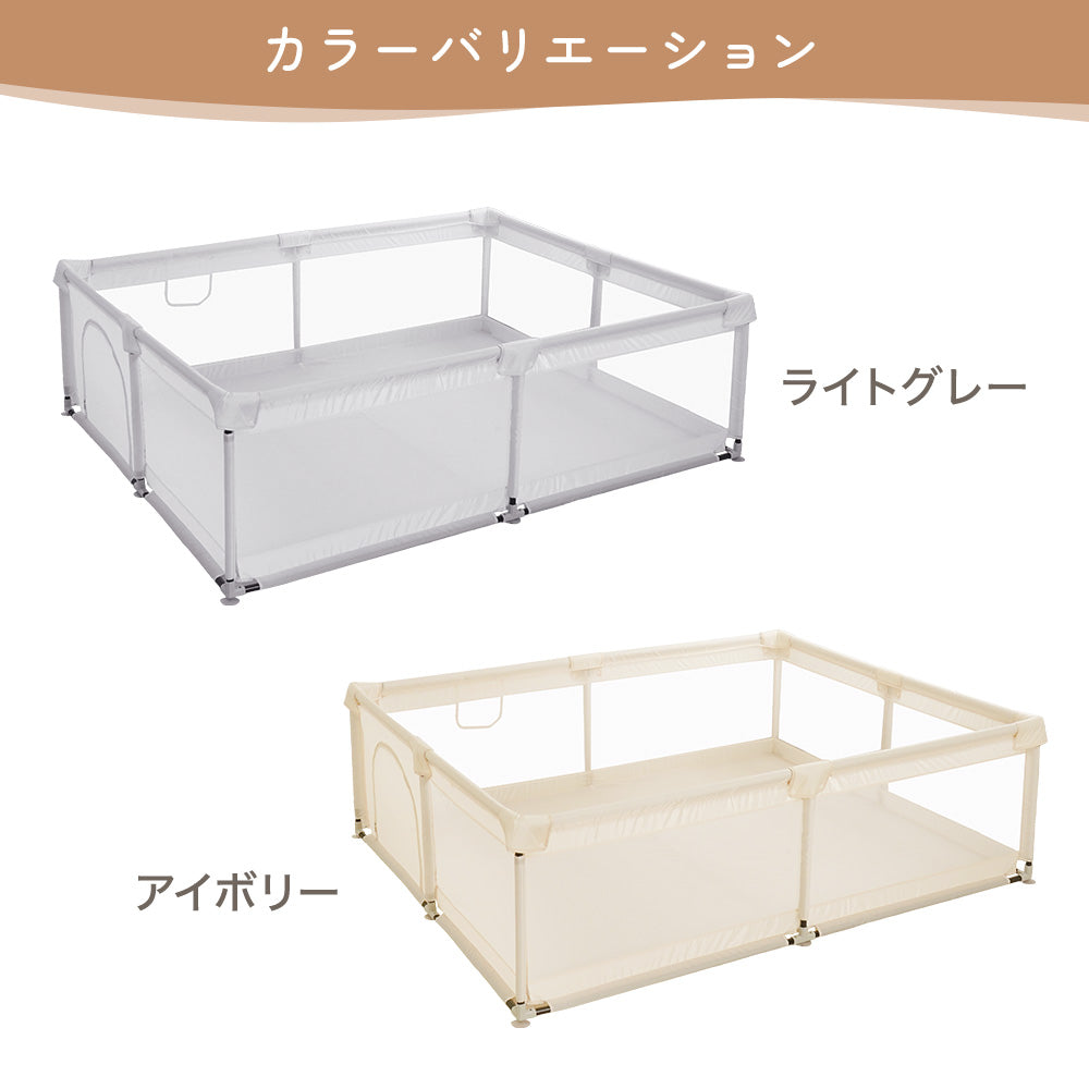 | 商品の特徴 | ・側面がメッシュのベビーサークルで、お子さまの様子が見えやすい ・当社シームレスプレイマットがぴったり入る新サイズ ・家事や入浴、どうしても外せない用事の時のお子さまの待機場所にぴったり ・キッズスペースとして使えば、散らかるおもちゃも簡単お片付け ・軽いので移動や掃除がらくらく ・工具がいらない簡単組み立て構造 ・天面、側面は柔らかいスポンジ付きのフレーム ・床面パーツには吸盤がついていて、ズレにくく倒れにくい ・外側からのみ開くファスナー式出入り口 ・便利な小物ポケット付き ・取り外して洗濯できるカバー |