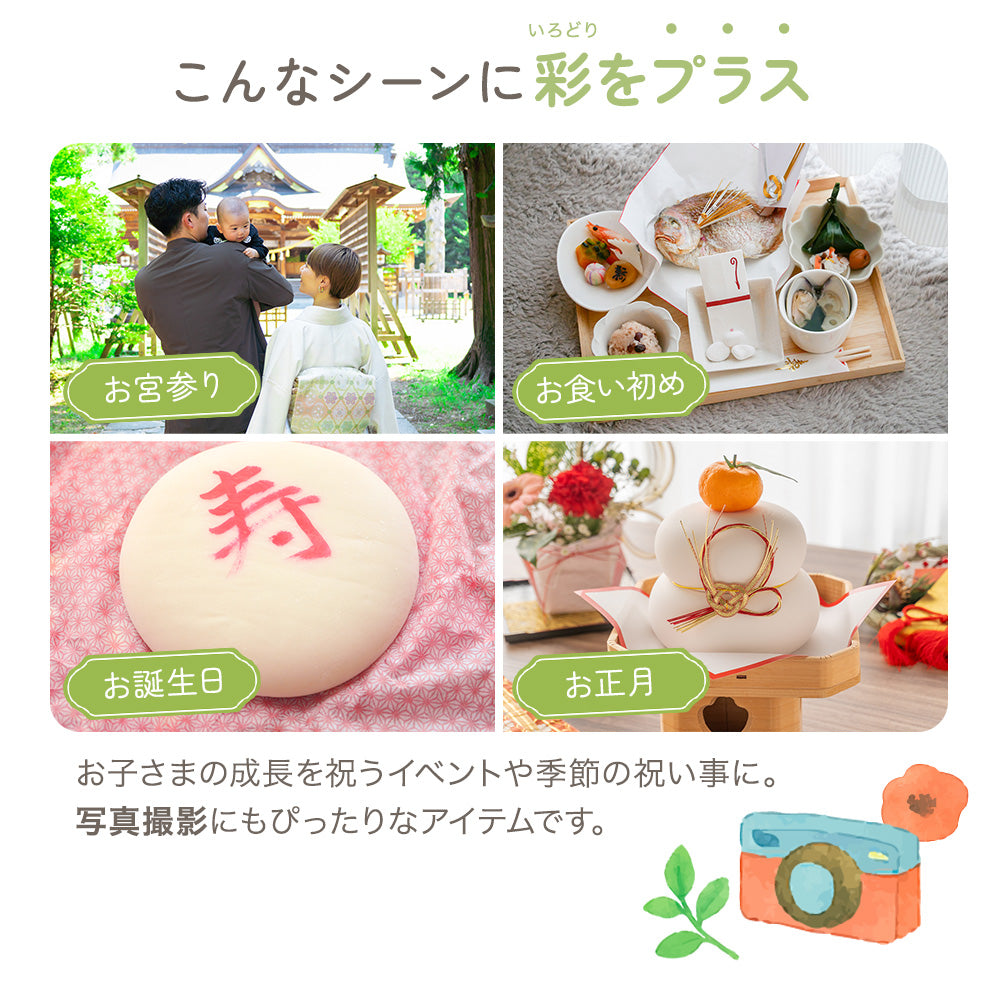 ・お宮参り、お食い初め、お誕生日、お正月など様々なシーンに。