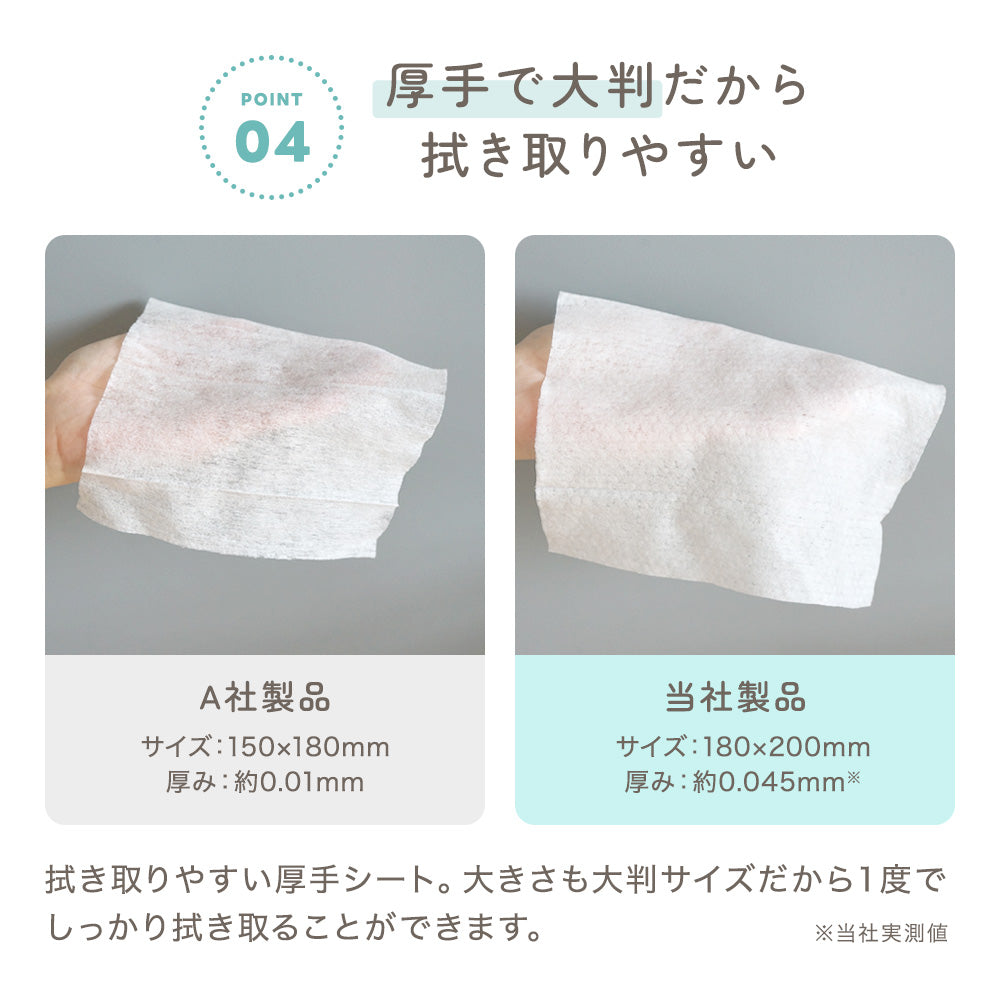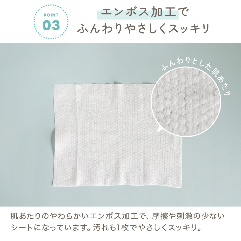 | 免責事項 | ※本製品は商品名称等の変更のため、パッケージにシールを貼って対応しております。また、商品のカートン箱や商品説明シールに「おしりふきシート」の記載がございますが、本製品はウェットシートになります。何卒ご容赦ください。 |