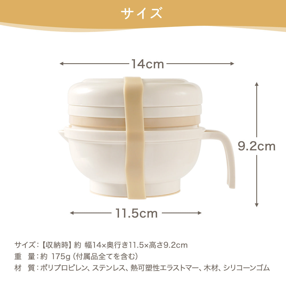 | サイズ | 収納時:約 幅14×奥行き11.5×高さ9.2cm スプーン:約 幅2.8×長さ12.8×厚み1.5cm すりこぎ:直径2×長さ14cm |
