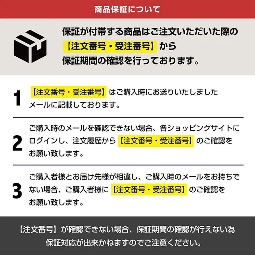 保証期間:購入日より6か月(本体のみ、自然故障による不具合の場合に限る)