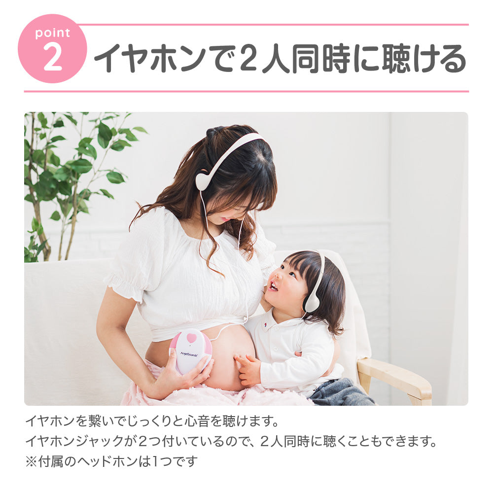 一緒に健診に行けない旦那様やご兄姉とご家庭で心音を一緒に聴く事ができます。また、録音機器に録音が可能なので赤ちゃんの心音を、離れた所に住むご両親や友人といつでも共有する事ができます。