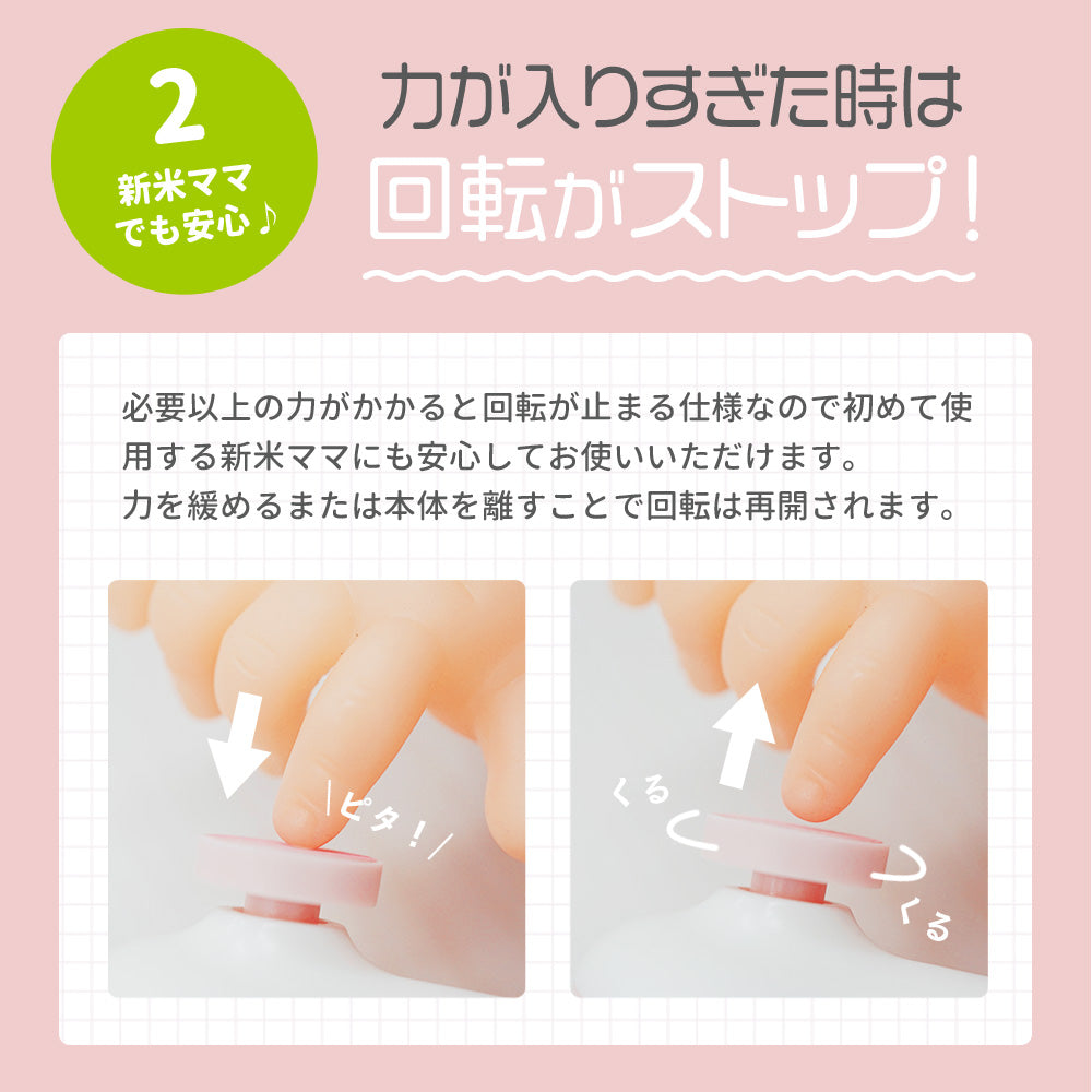 力が入りすぎたときは回転がストップするので、削りすぎる心配がありません。初めての子育てで不安な方も安心して使用できます。