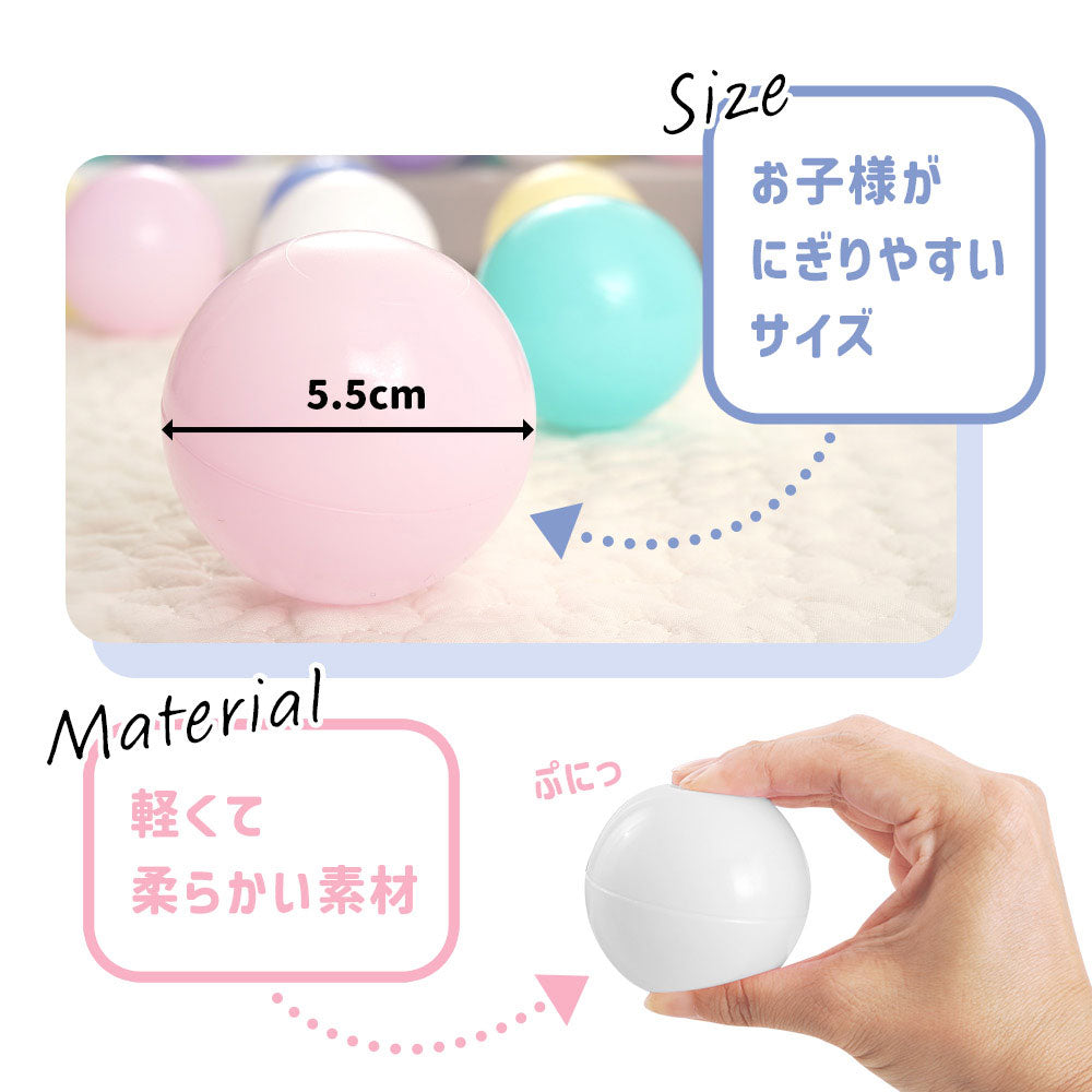 | 商品の特徴 | ●ボール遊びは指先のトレーニングにぴったり! ●掴む、握る、触る、投げるなど、遊びながら指先の発達を促します。 ●食品衛生検査合格!お子様がなめても安心です。 ●冬場のお風呂や夏のプールに入れて遊べます。 ●ボールプールのボール補充にも最適です。 |