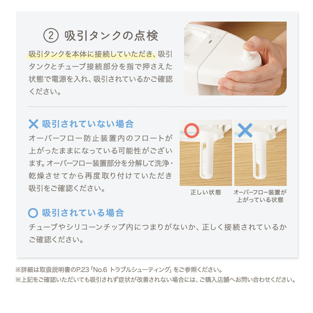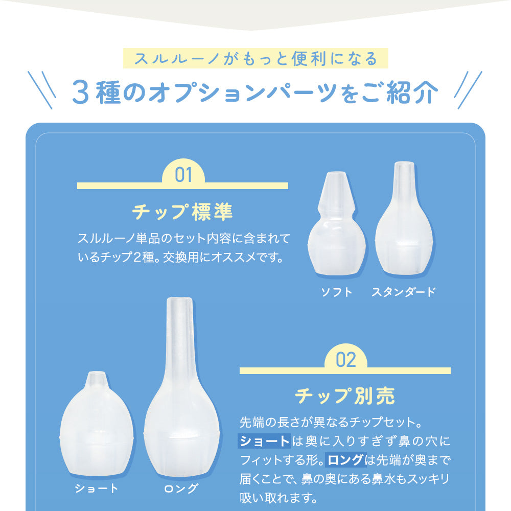 | セット内容 | ・スルルーノ本体部 ・吸引タンク部 ・シリコーンチップ(ソフト、スタンダード) ・チューブホルダー(大、小) ・シリコーンチップ洗浄ブラシ ・チューブクリップ ・吸引チューブ ・チップコネクター ・専用ACアダプター ・収納ポーチ |