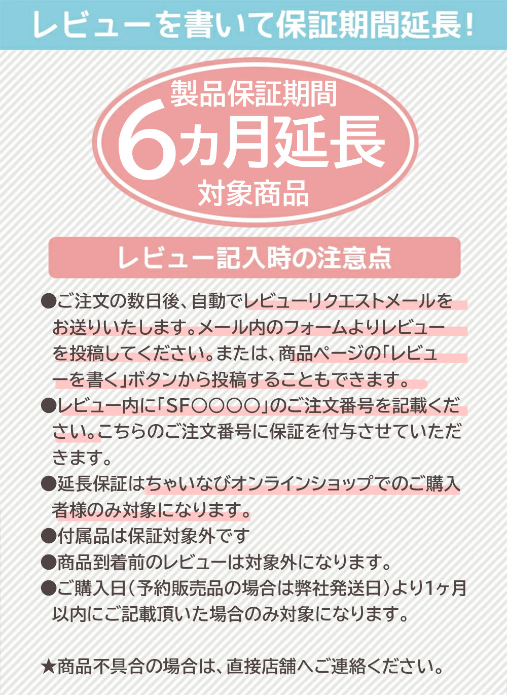 | 保証について | 購入日より12か月保証(本体のみ対象) ※収納ポーチの初期傷については保証対象となりませんので予めご了承ください。 |