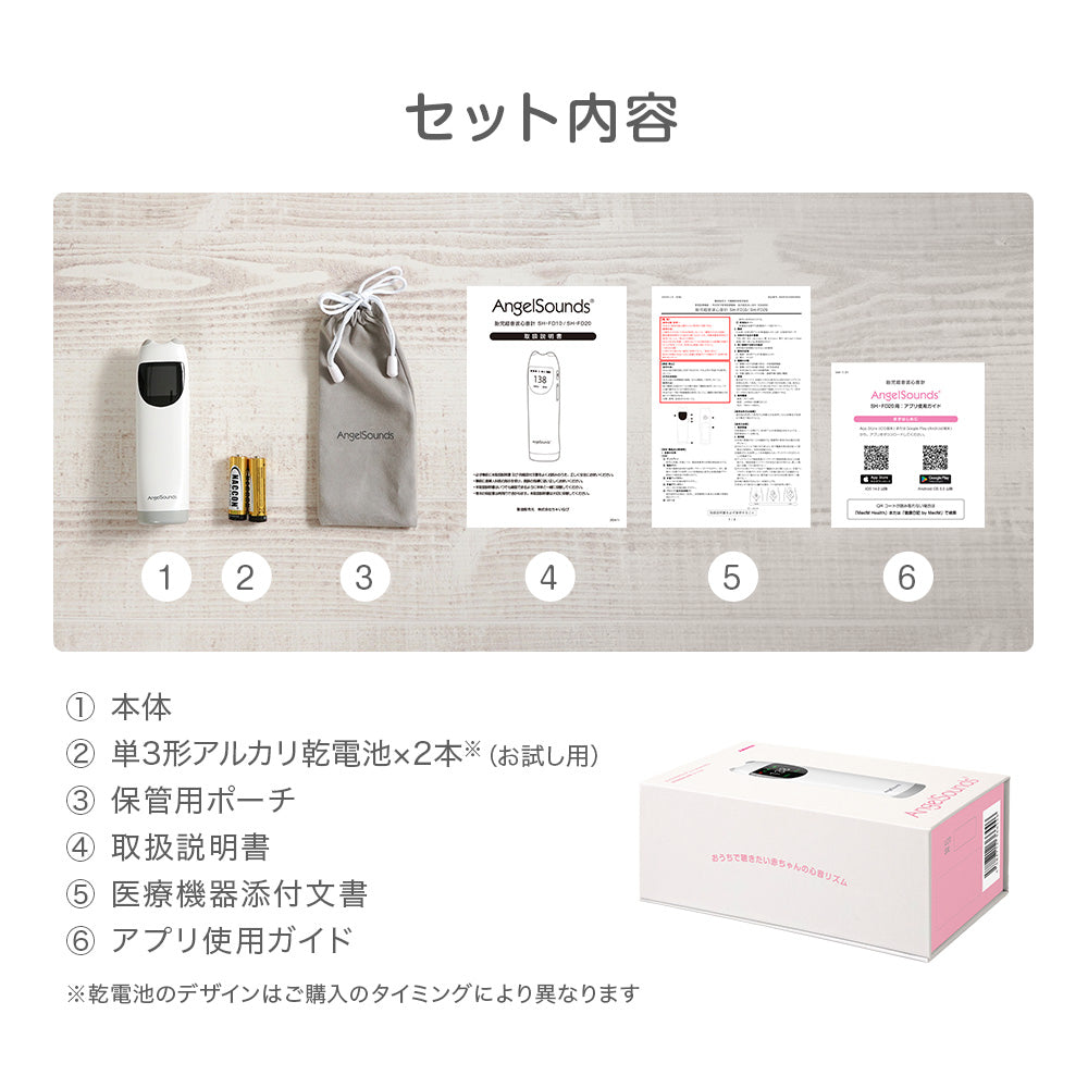 | 付属品 | 単3形アルカリ乾電池×2本(お試し用)、保管用ポーチ、医療機器添付文書、取扱説明書、アプリ使用ガイド |