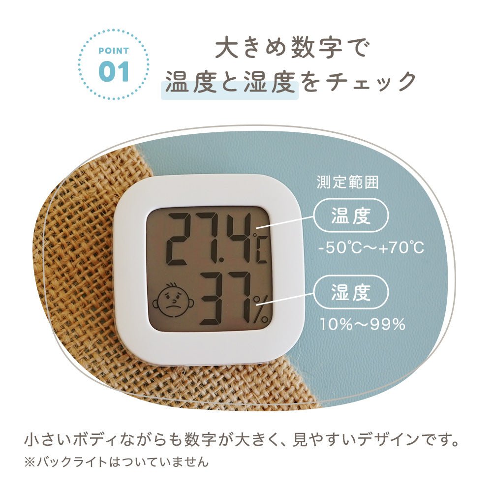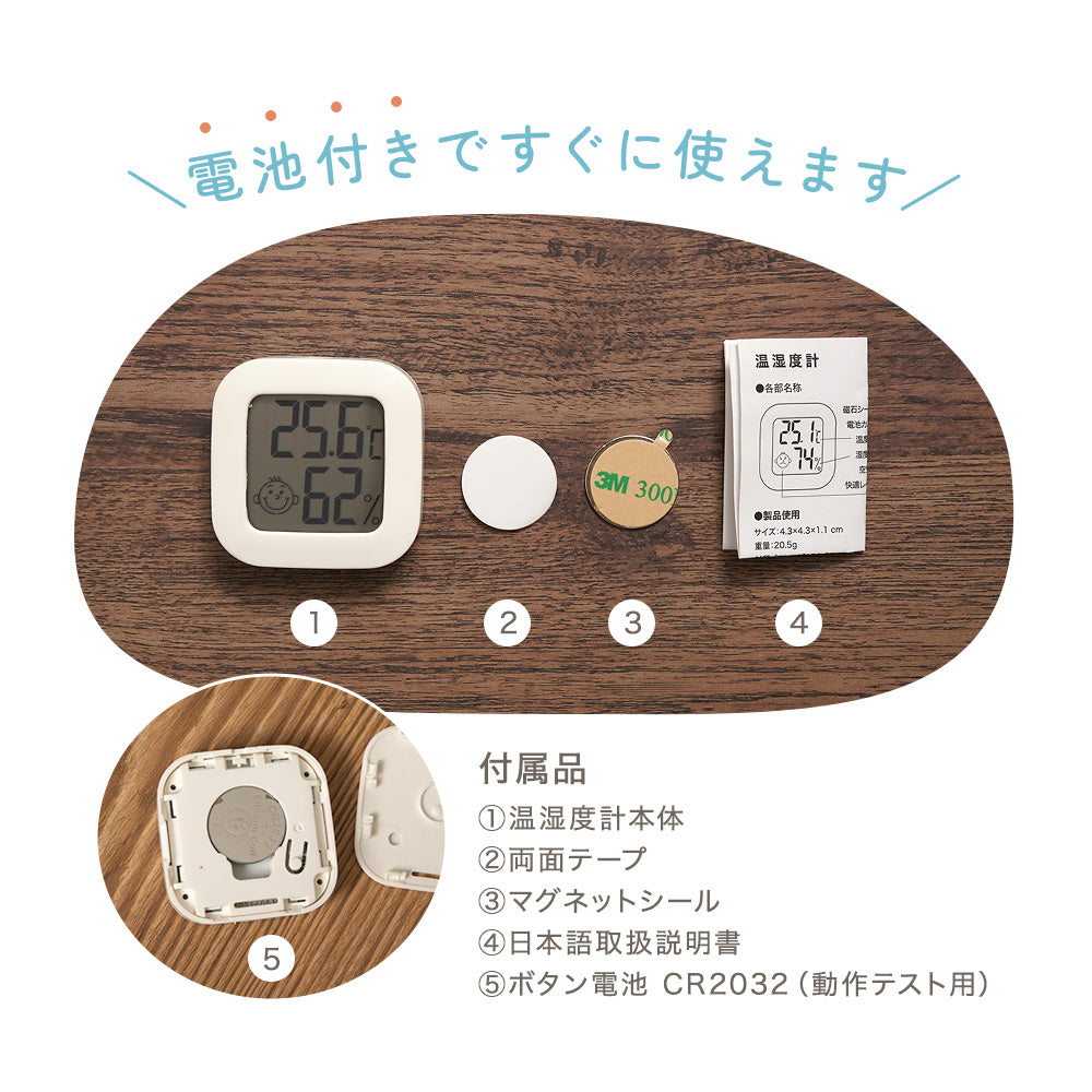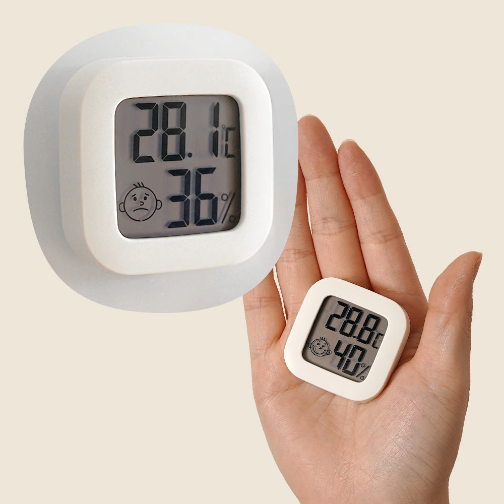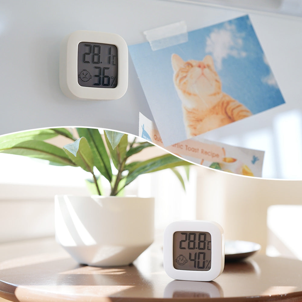 | 商品の特徴 | ・極小サイズでどこにも置ける温湿度計 ・一目で室内環境がわかる ・快適レベルをイラストで表示 ・マグネット&両面テープで貼り付けOK |