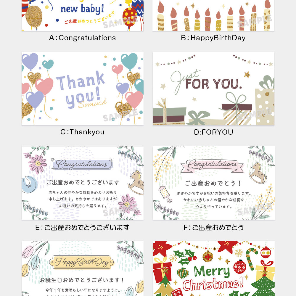 気持ちを伝えるちゃいなびオリジナルメッセージカードをお選びいただけます。